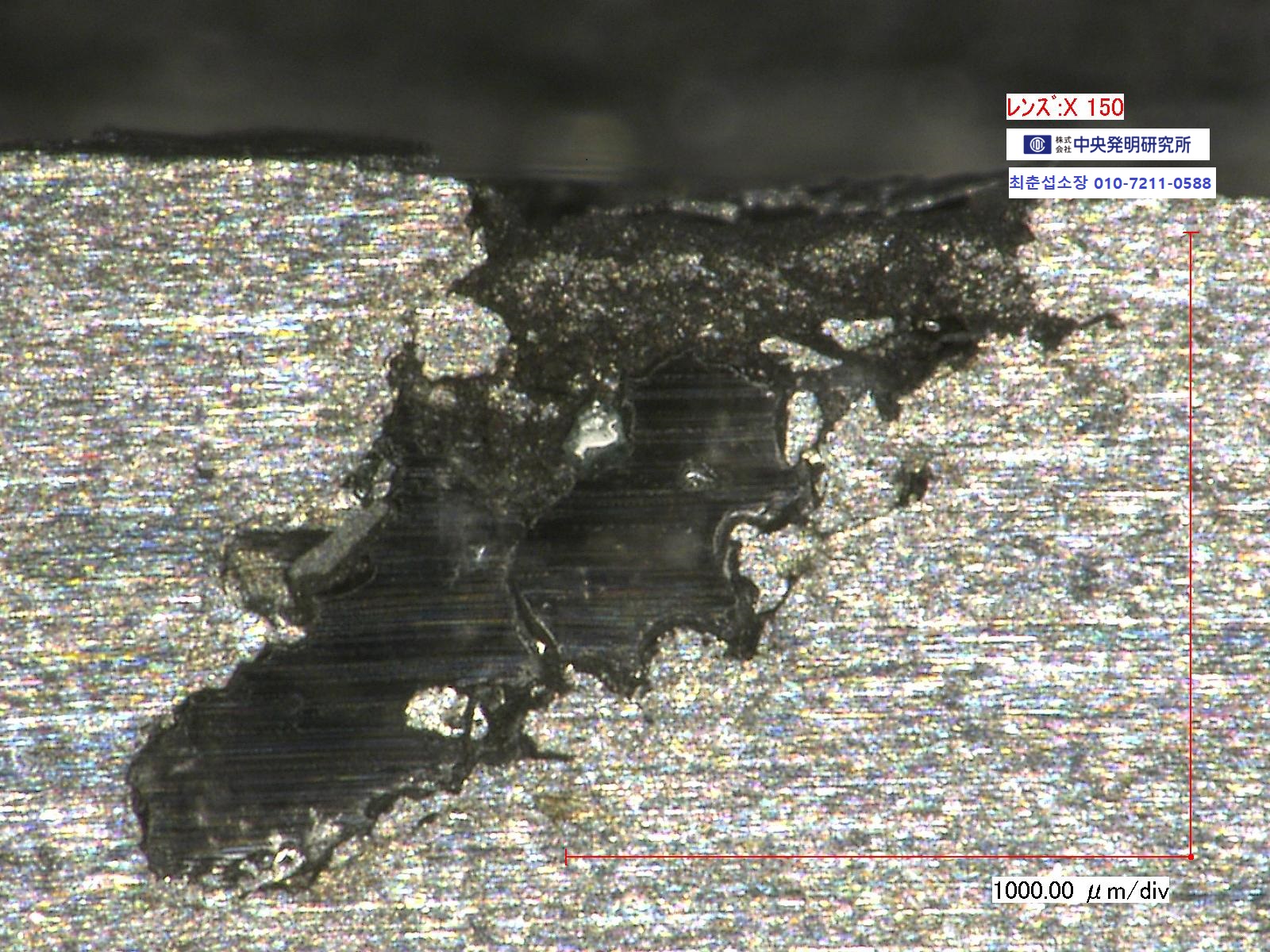 함침후 특수 절단기를 이용하여 절단후 400배 확대하여 함침 유무를 판단